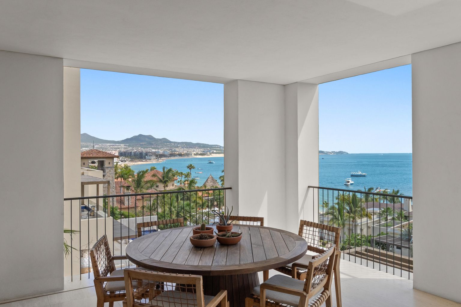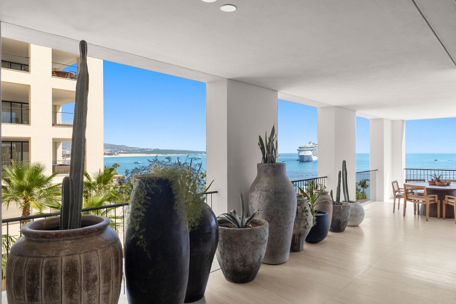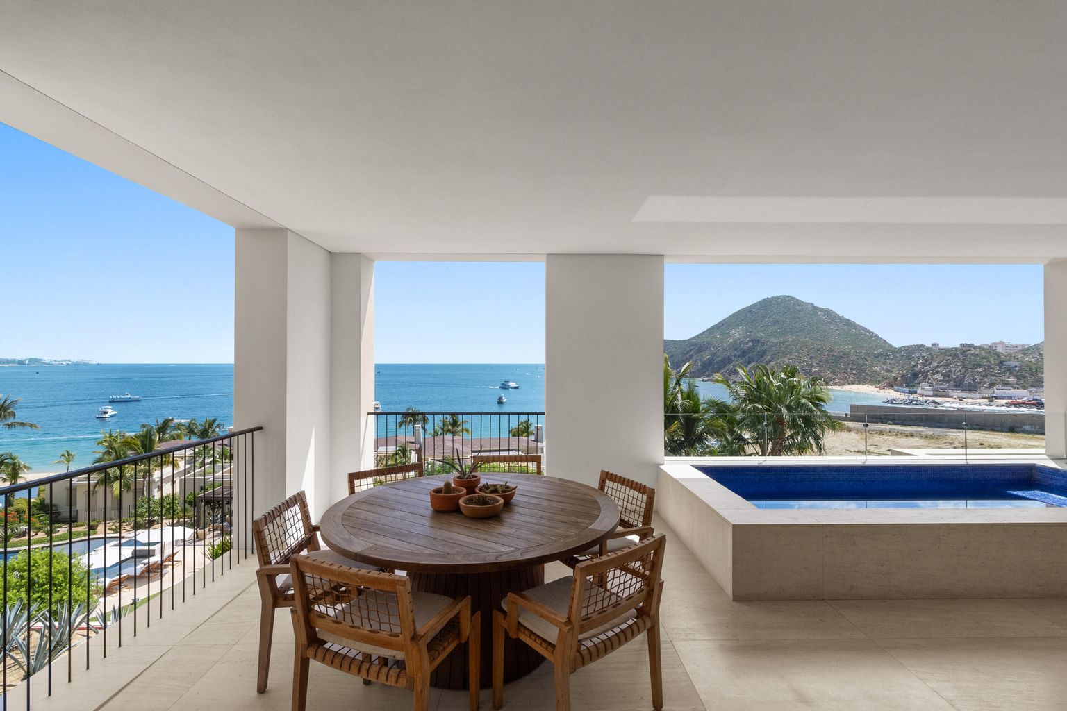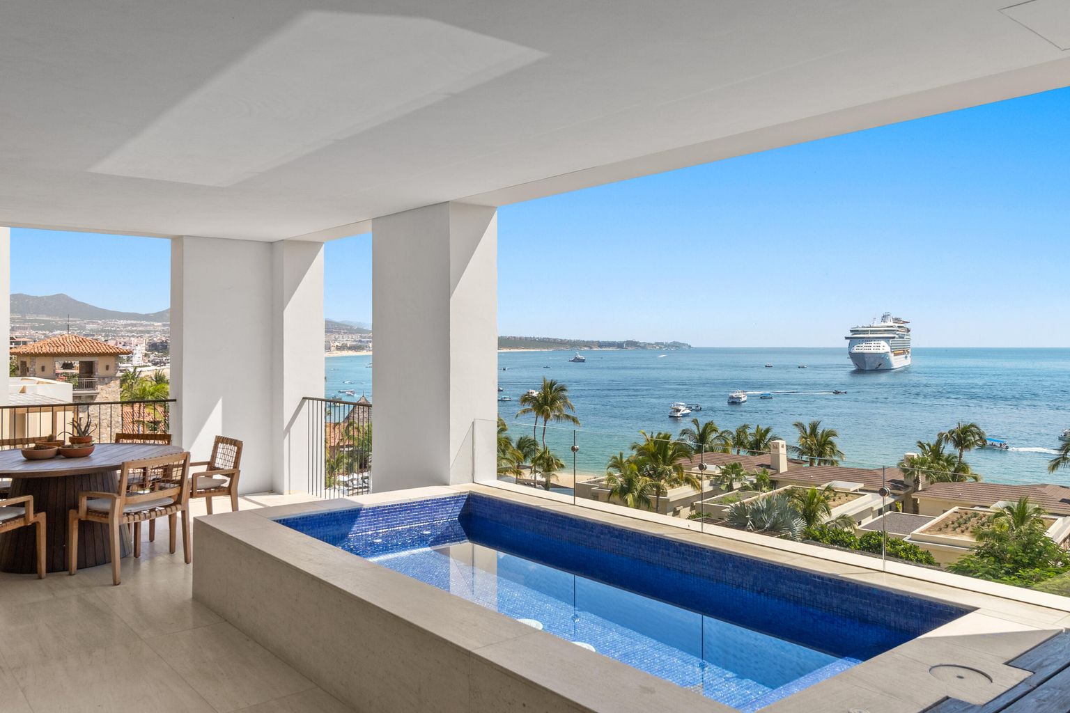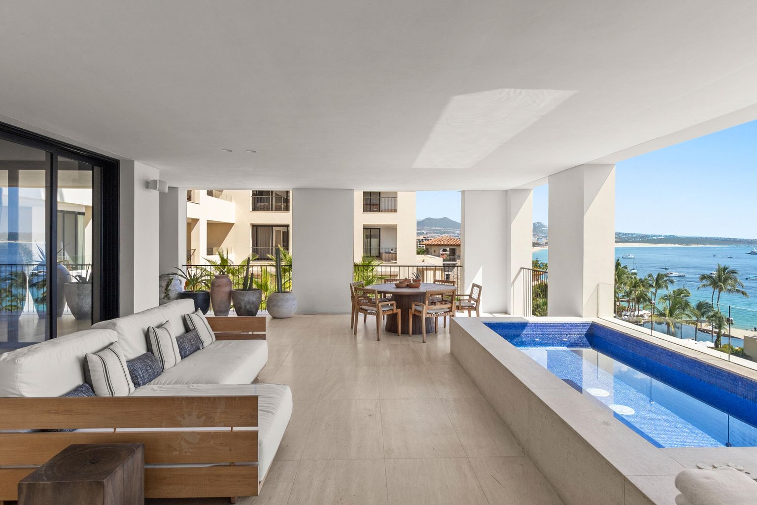 Discover this stunning two-bedroom residence with a den, featuring a wraparound terrace with a private plunge pool and spectacular ocean views. The open-concept design and floor-to-ceiling windows bring in natural light and showcase the beauty of the Sea of Cortez and Land's End. This luxurious home is fully furnished and ready for you to move in. Located in the exclusive 1 Homes at Hacienda Club, Phase 2, right on medano beach.