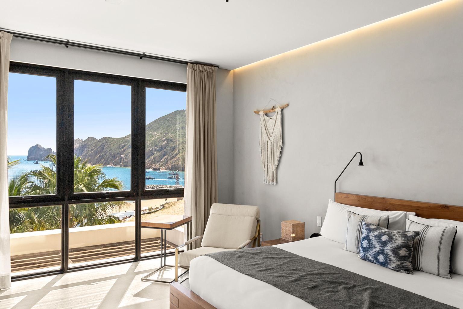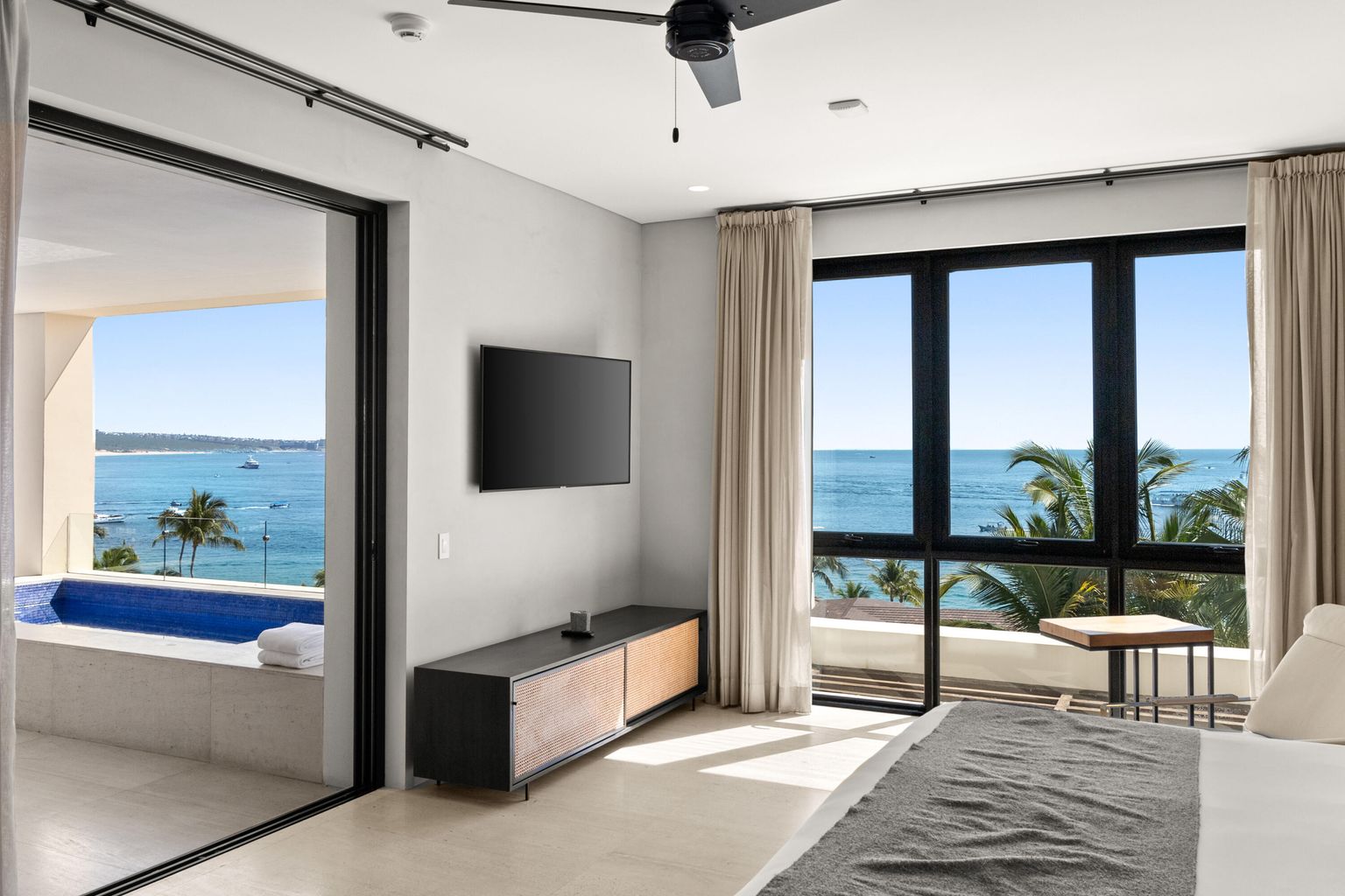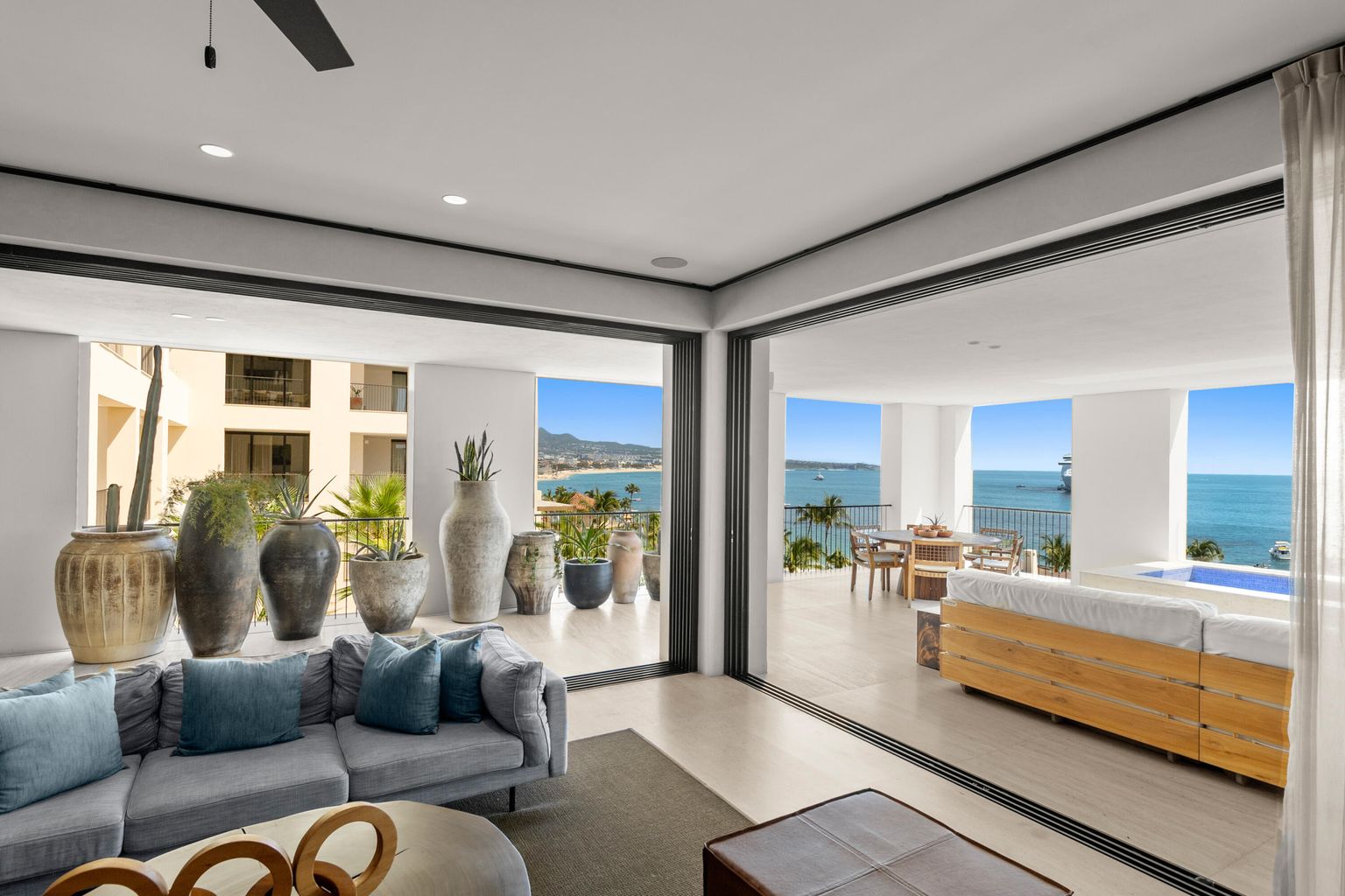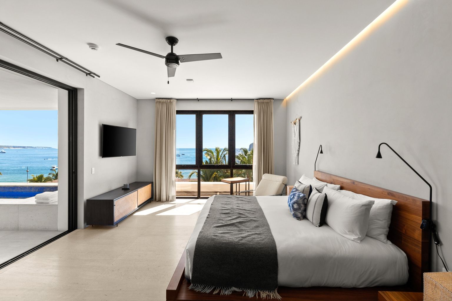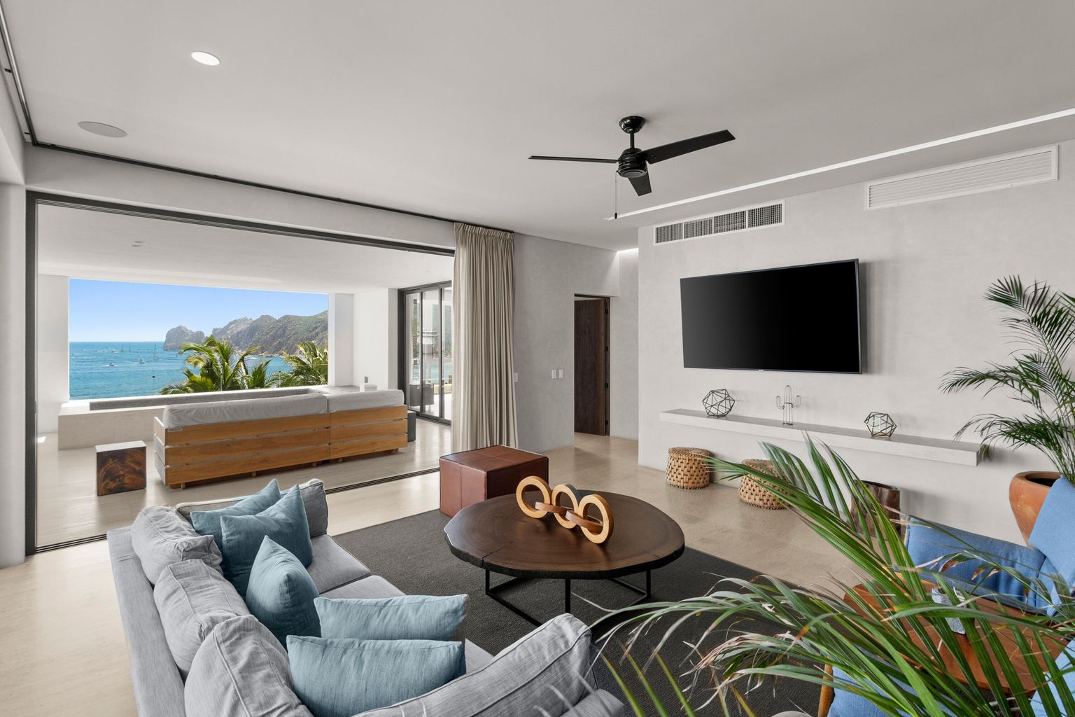 Discover this stunning two-bedroom residence with a den, featuring a wraparound terrace with a private plunge pool and spectacular ocean views. The open-concept design and floor-to-ceiling windows bring in natural light and showcase the beauty of the Sea of Cortez and Land's End. This luxurious home is fully furnished and ready for you to move in. Located in the exclusive 1 Homes at Hacienda Club, Phase 2, right on medano beach.