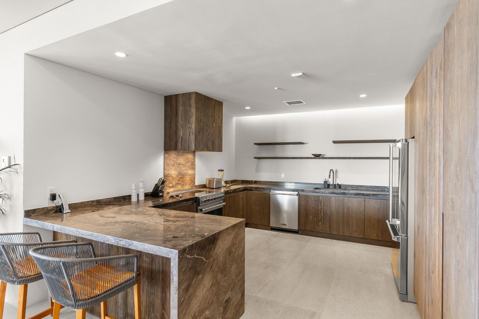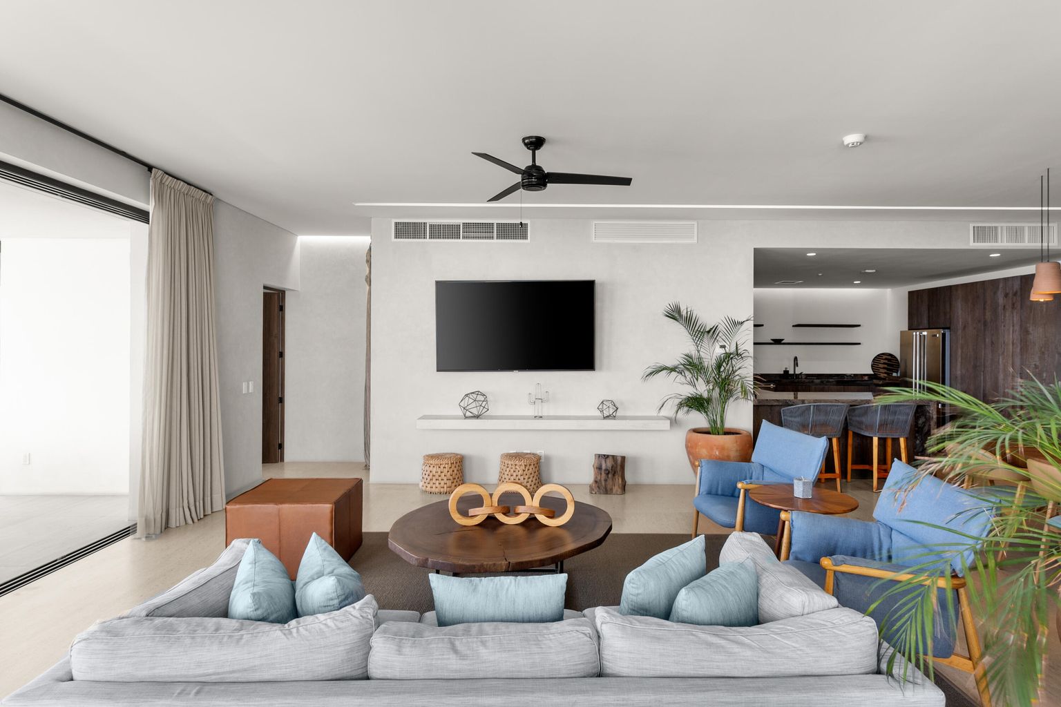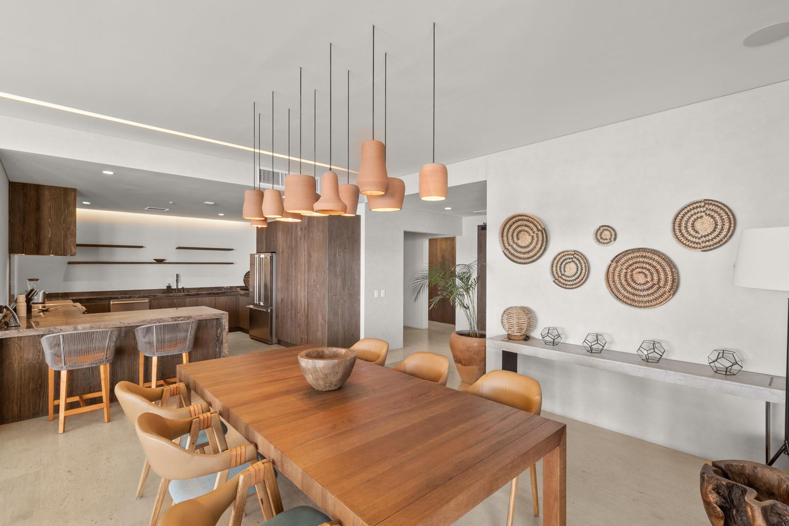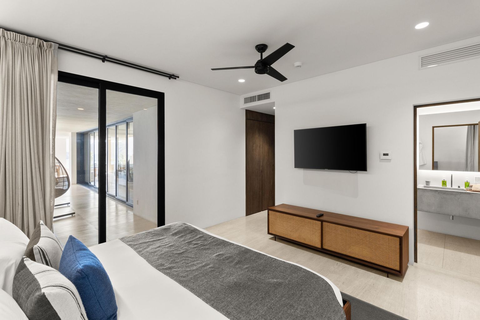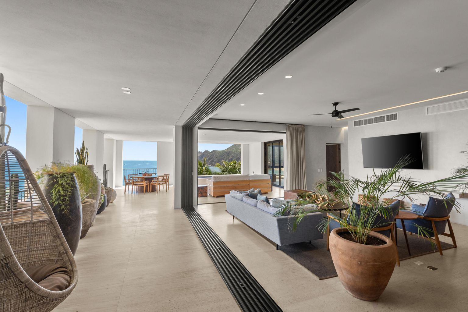 Discover this stunning two-bedroom residence with a den, featuring a wraparound terrace with a private plunge pool and spectacular ocean views. The open-concept design and floor-to-ceiling windows bring in natural light and showcase the beauty of the Sea of Cortez and Land's End. This luxurious home is fully furnished and ready for you to move in. Located in the exclusive 1 Homes at Hacienda Club, Phase 2, right on medano beach.