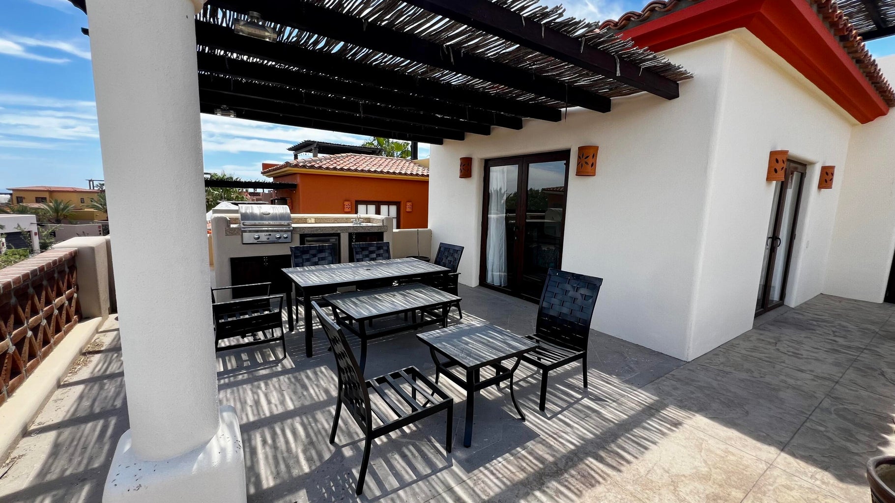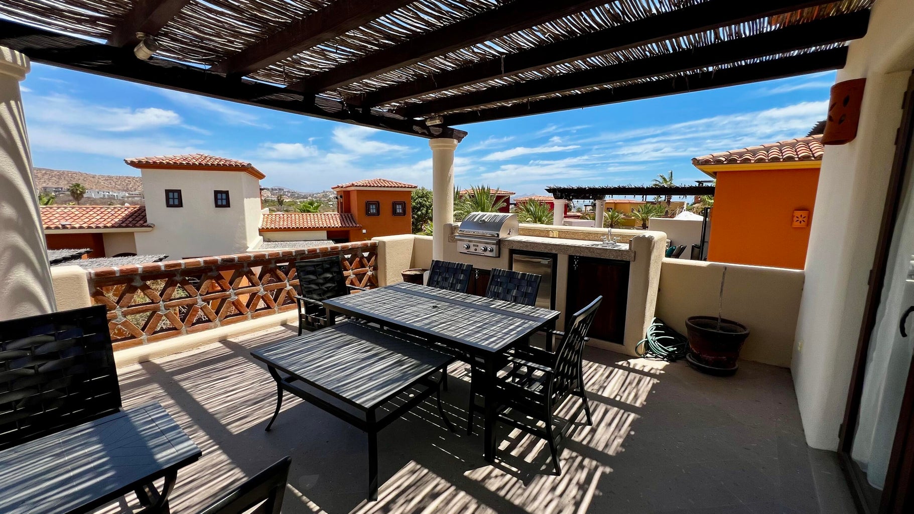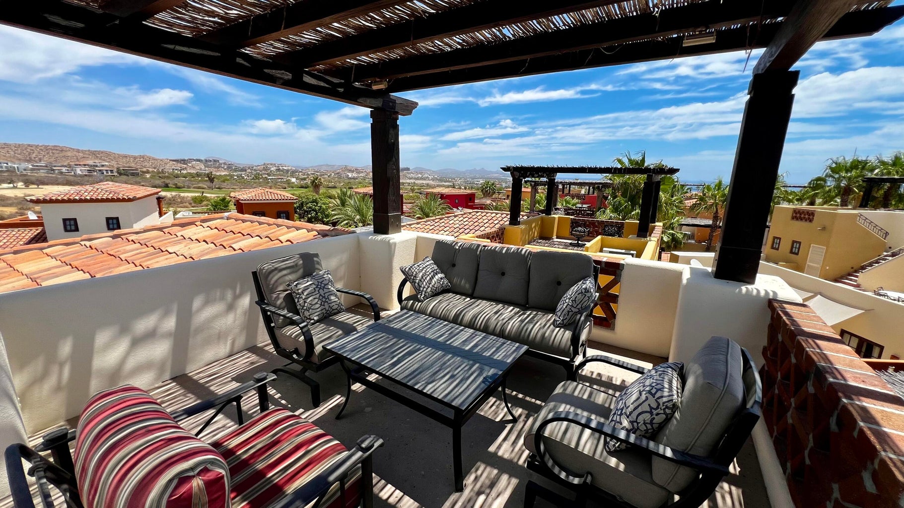 This home is move-in ready. It features three bedrooms, including a master bedroom downstairs and two more upstairs. The layout is guest-friendly, with king beds in all bedrooms. The kitchen boasts stainless steel appliances, all from GE. Situated in the peaceful Bugambillia area of the community, it's conveniently close to parking and the headed community pool. Enjoy lovely views of both the sea and mountains from this location. The home is tastefully furnished throughout. Plus, the sale includes a Golf/Beach Club Membership. Buyer is responsible for transfer fees, which amount to $1,500.00 USD.