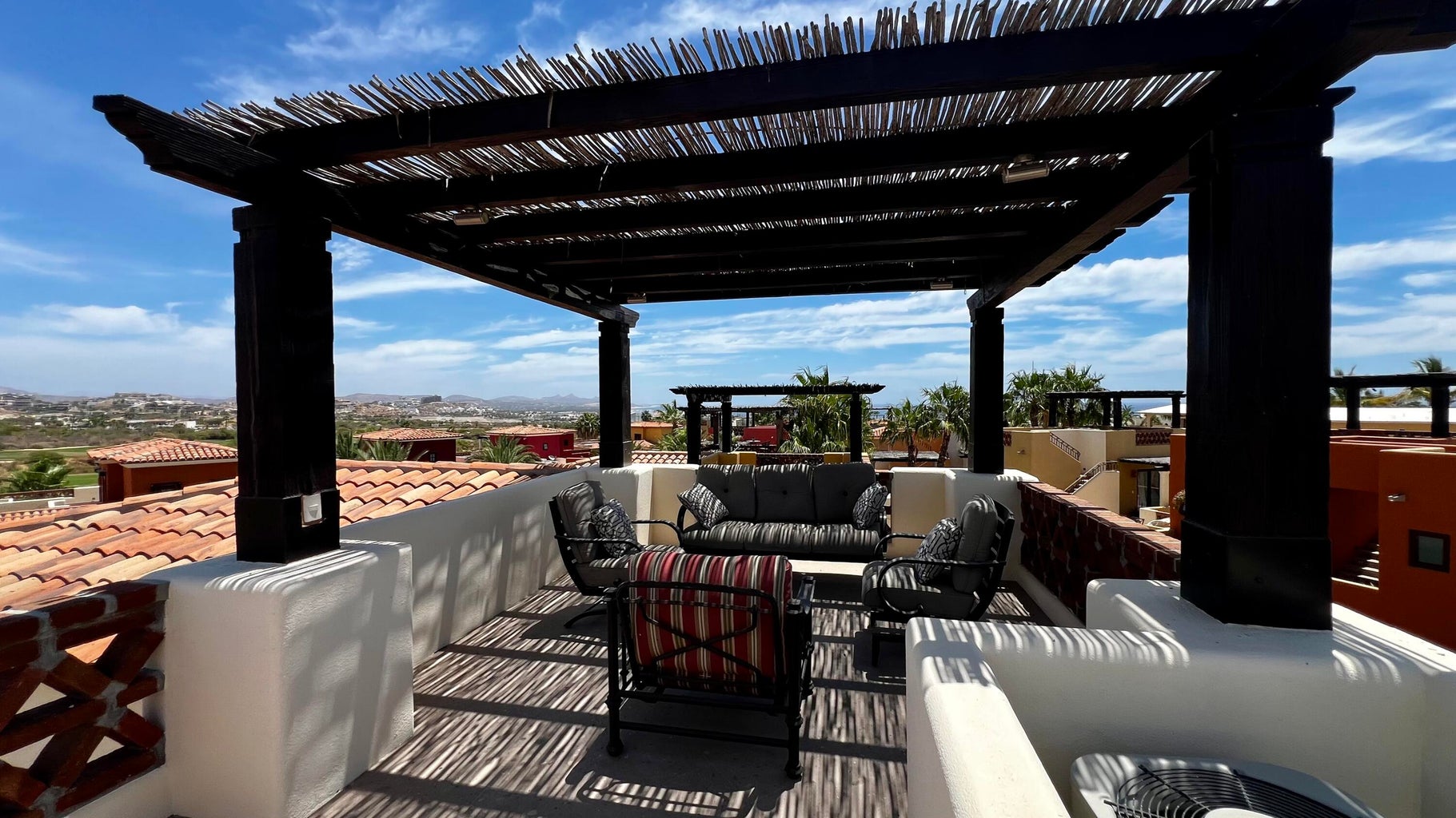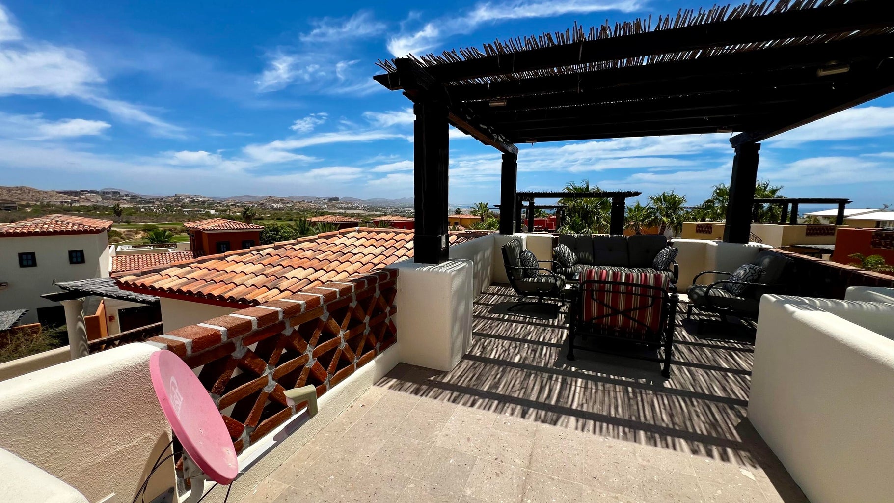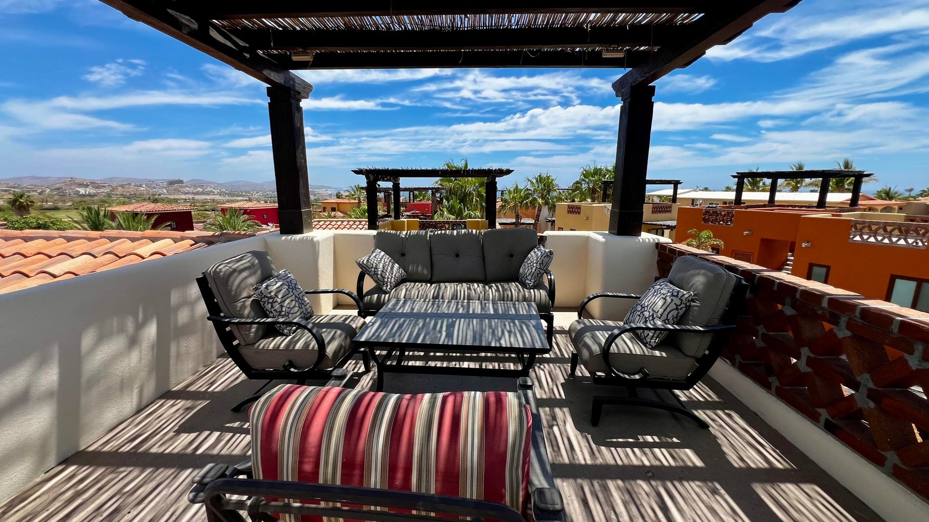 This home is move-in ready. It features three bedrooms, including a master bedroom downstairs and two more upstairs. The layout is guest-friendly, with king beds in all bedrooms. The kitchen boasts stainless steel appliances, all from GE. Situated in the peaceful Bugambillia area of the community, it's conveniently close to parking and the headed community pool. Enjoy lovely views of both the sea and mountains from this location. The home is tastefully furnished throughout. Plus, the sale includes a Golf/Beach Club Membership. Buyer is responsible for transfer fees, which amount to $1,500.00 USD.