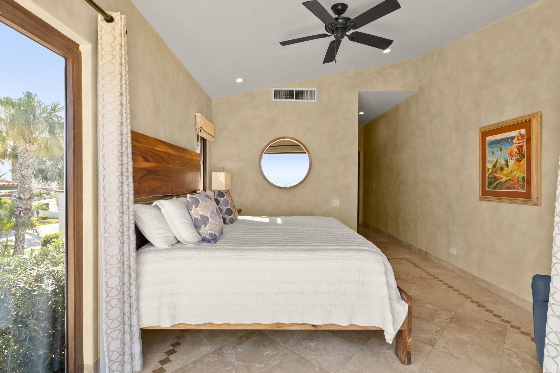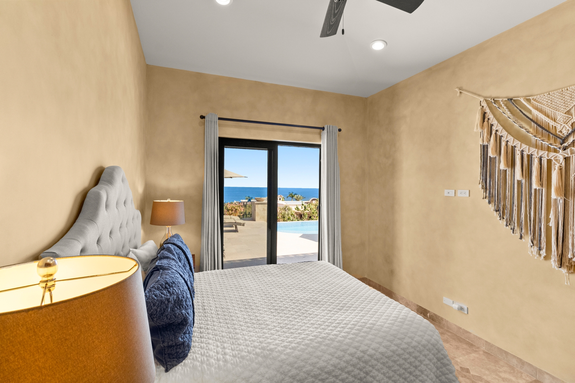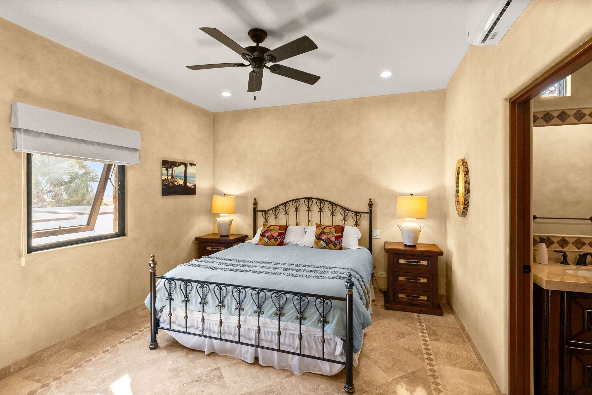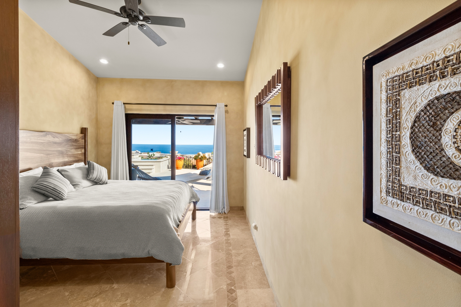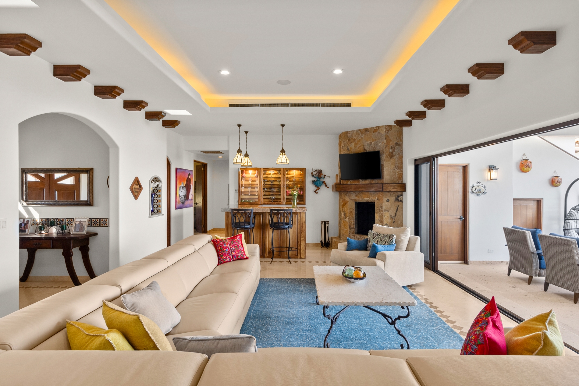 Nestled atop the Altillo Community, this remarkable single-level, seven-bedroom home boasts unbeatable 180-degree views, including Palmilla Point, the lighthouse, the marina, the golf course, mountains, and city lights. The expansive open floor plan includes five spacious bedrooms, each with an en-suite bathroom, perfect for relaxation. Additional features include a TV room, gym, and a charming casita complete with its own private kitchen, living room, and bedroom. The home is designed with two walk-in master closets, eight skylights, an outdoor shower, and a Sonos music system both inside and outside. The hurricane-resistant windows flood the home with natural light, offering breathtaking ocean vistas from every room. The outdoor pool and BBQ area seamlessly blend indoor and outdoor living, creating an ideal space for entertaining. The two-level rooftop sitting area provides a perfect spot to enjoy sunrises, sunsets, and moonrises. At the end of the day, you can relax on the roof deck, enjoying a glass of wine while taking in the unobstructed 360-degree views - a rare feature in PLC. This home truly offers a unique and luxurious living experience.
