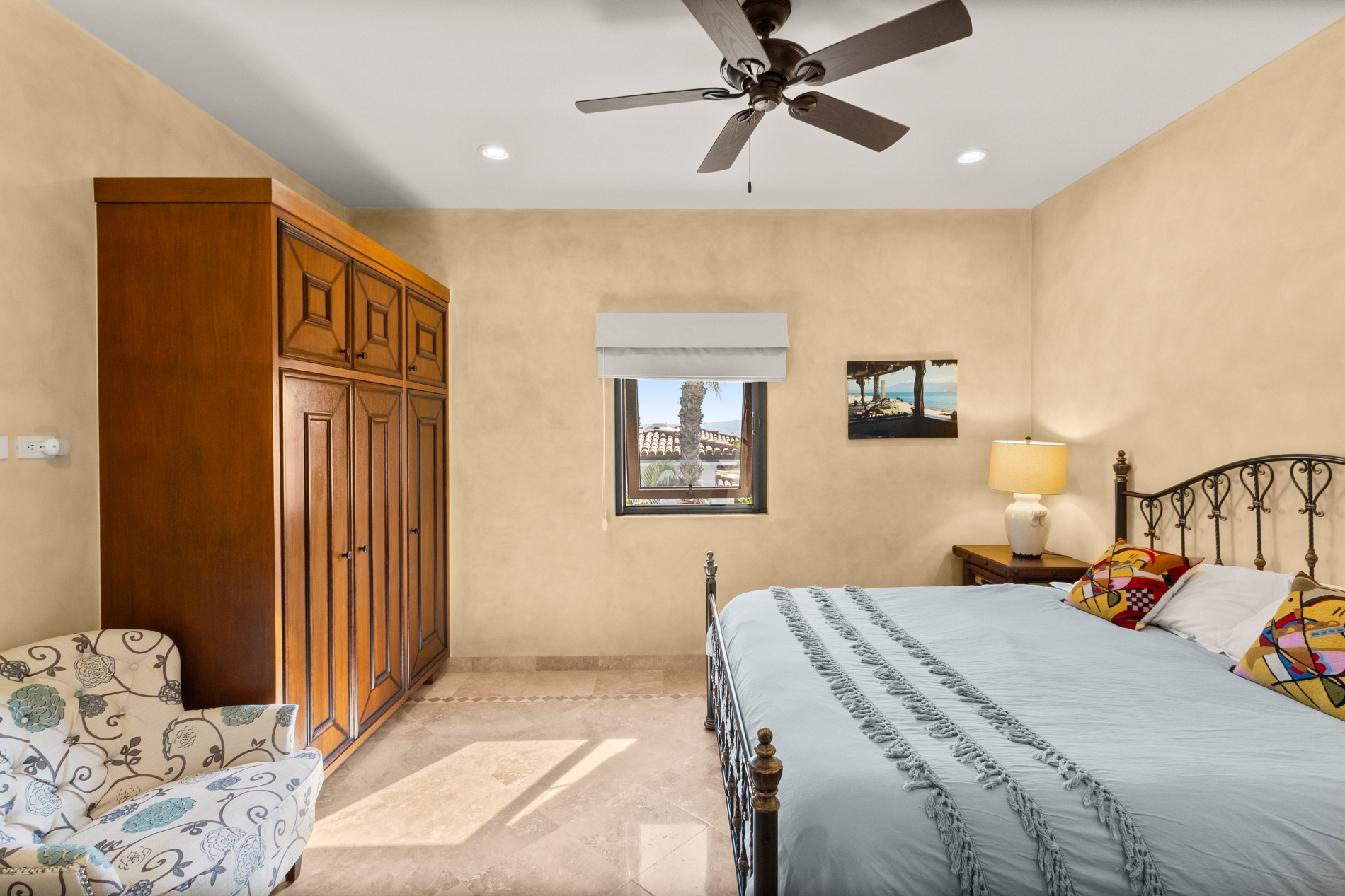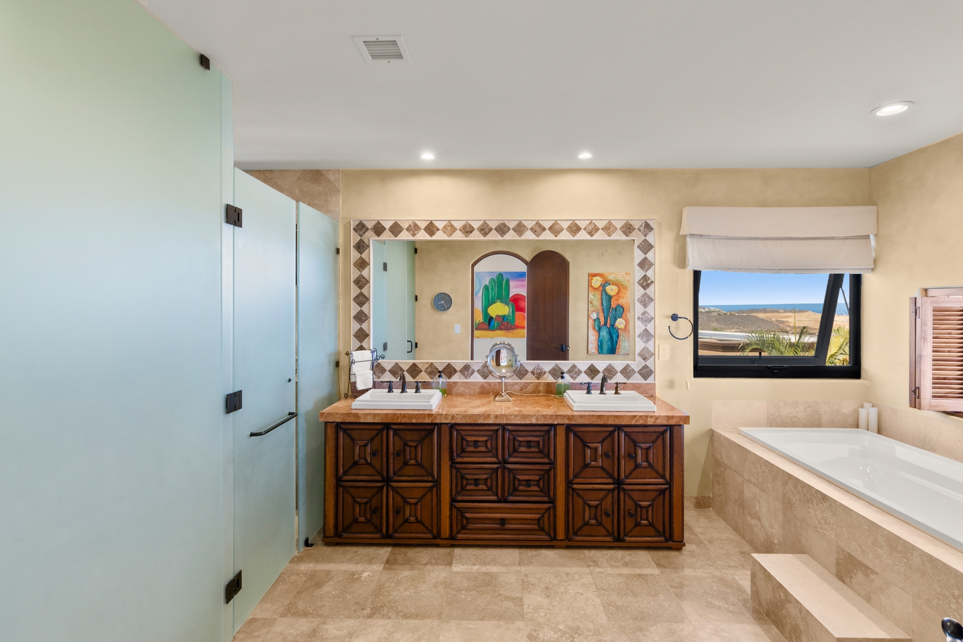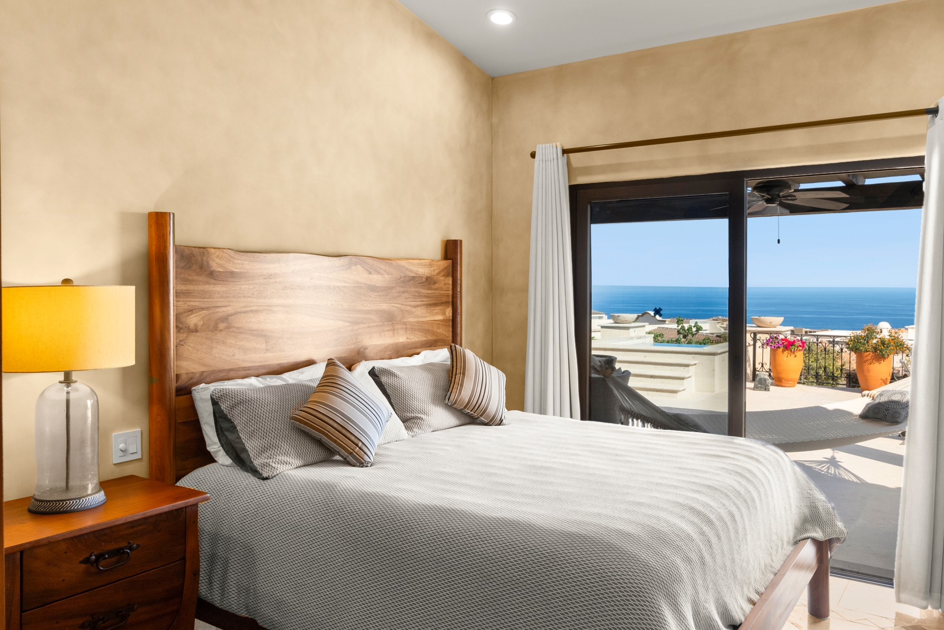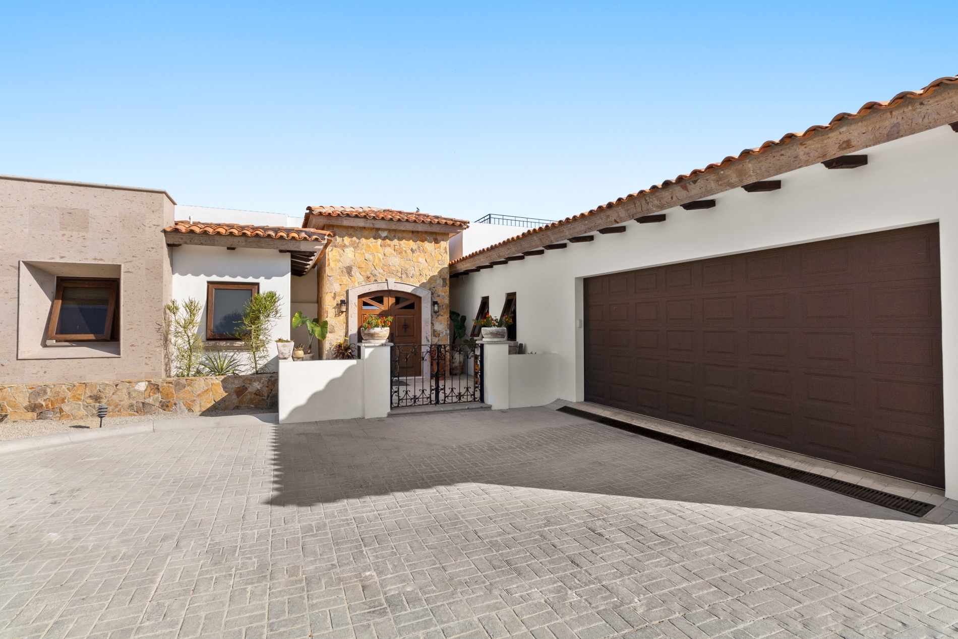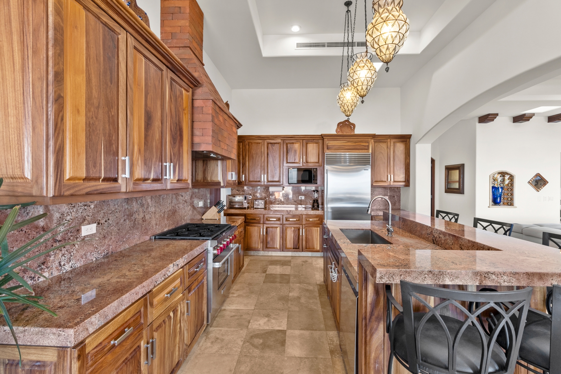 Nestled atop the Altillo Community, this remarkable single-level, seven-bedroom home boasts unbeatable 180-degree views, including Palmilla Point, the lighthouse, the marina, the golf course, mountains, and city lights. The expansive open floor plan includes five spacious bedrooms, each with an en-suite bathroom, perfect for relaxation. Additional features include a TV room, gym, and a charming casita complete with its own private kitchen, living room, and bedroom. The home is designed with two walk-in master closets, eight skylights, an outdoor shower, and a Sonos music system both inside and outside. The hurricane-resistant windows flood the home with natural light, offering breathtaking ocean vistas from every room. The outdoor pool and BBQ area seamlessly blend indoor and outdoor living, creating an ideal space for entertaining. The two-level rooftop sitting area provides a perfect spot to enjoy sunrises, sunsets, and moonrises. At the end of the day, you can relax on the roof deck, enjoying a glass of wine while taking in the unobstructed 360-degree views - a rare feature in PLC. This home truly offers a unique and luxurious living experience.
