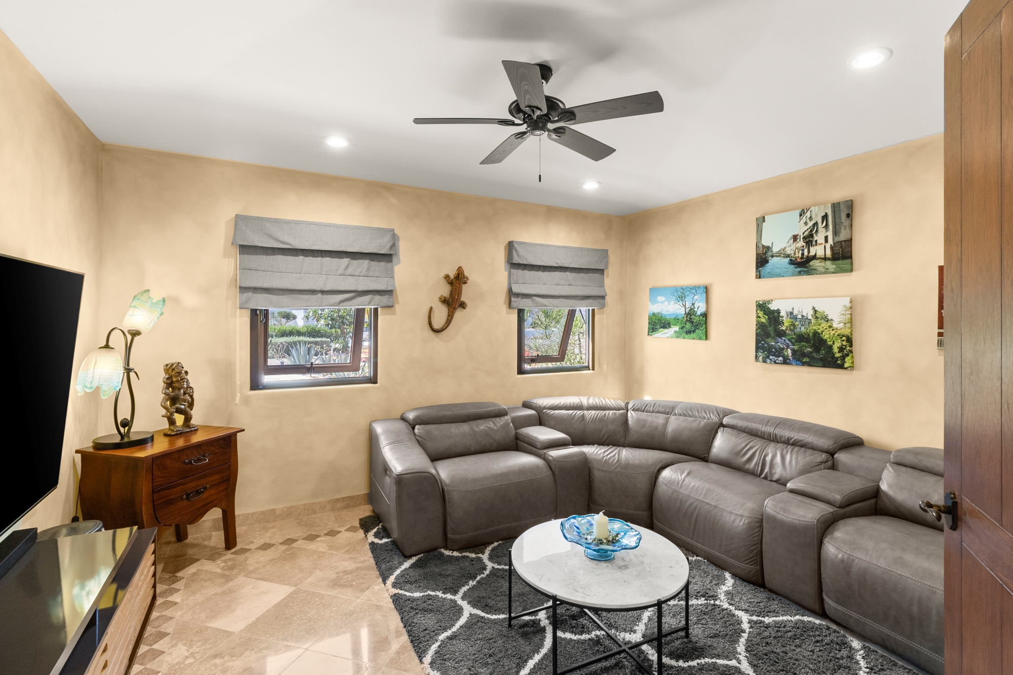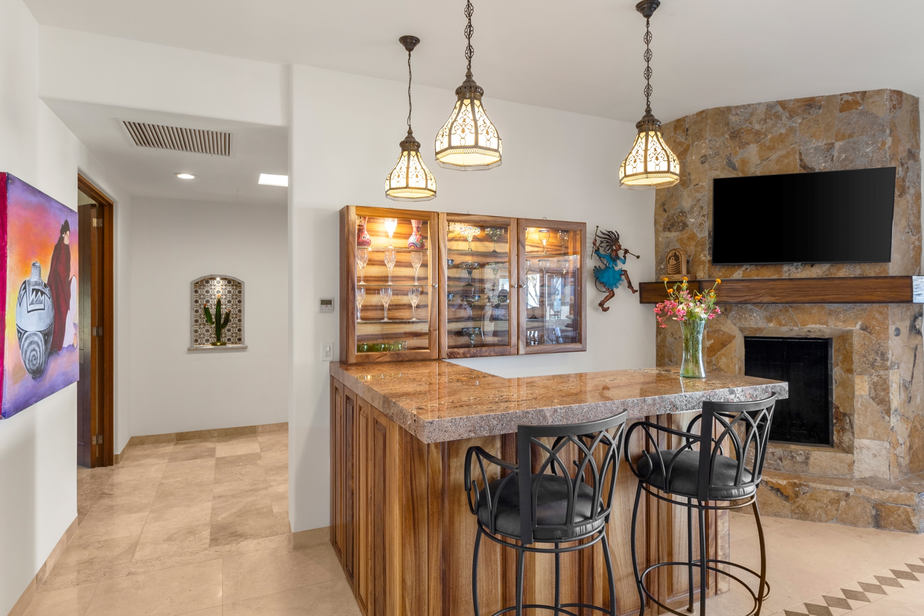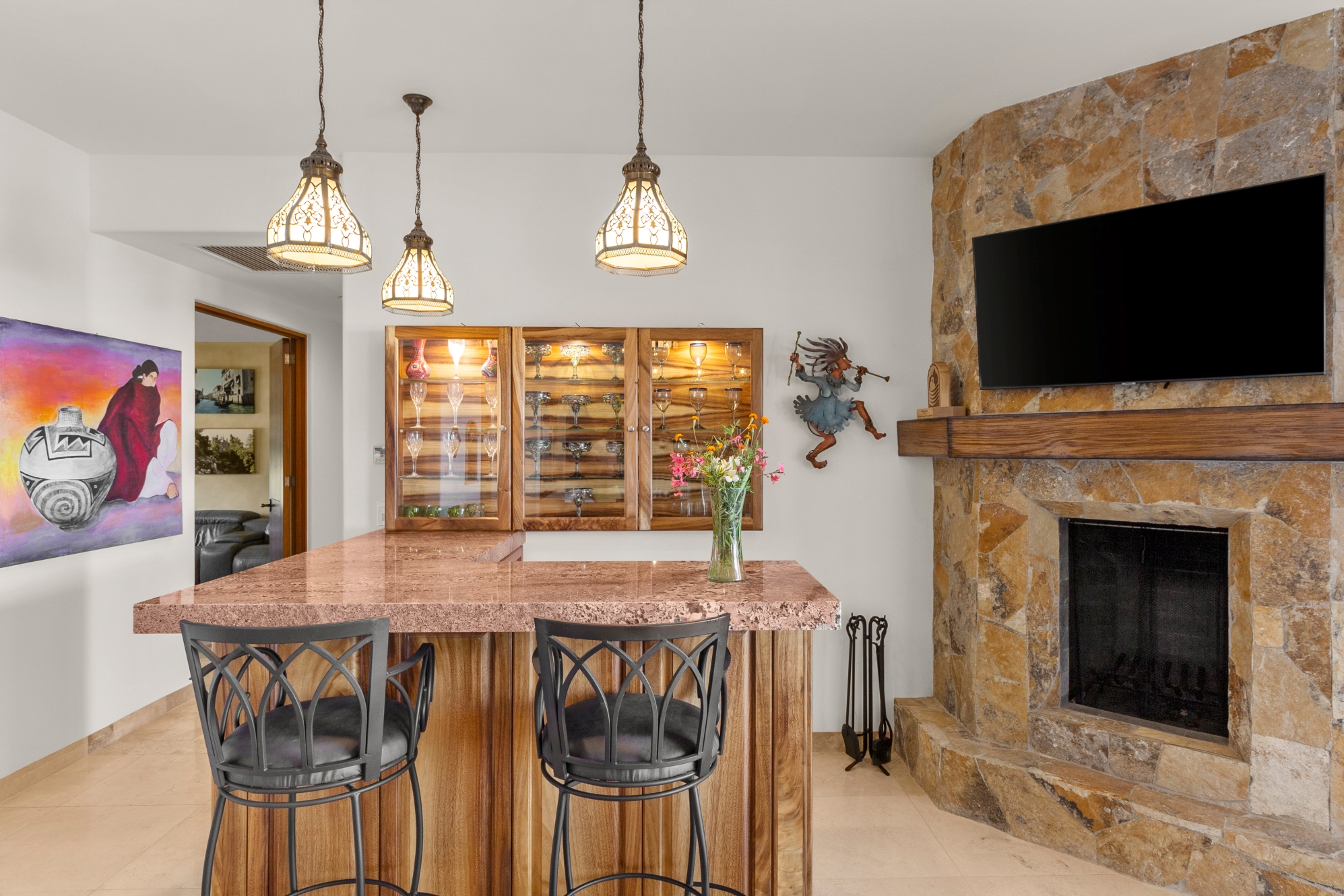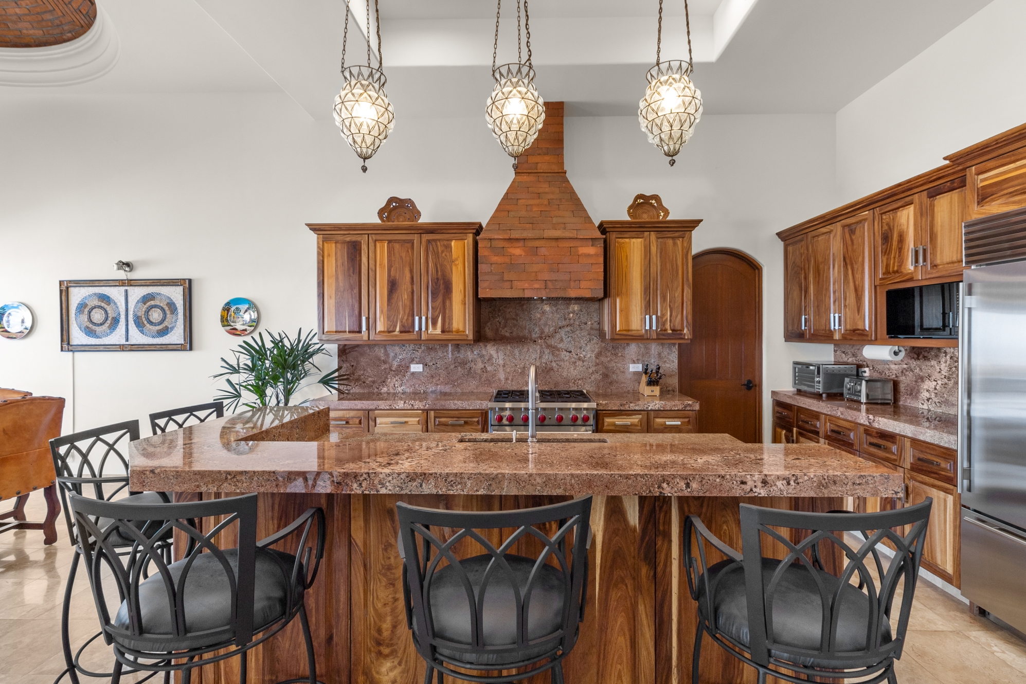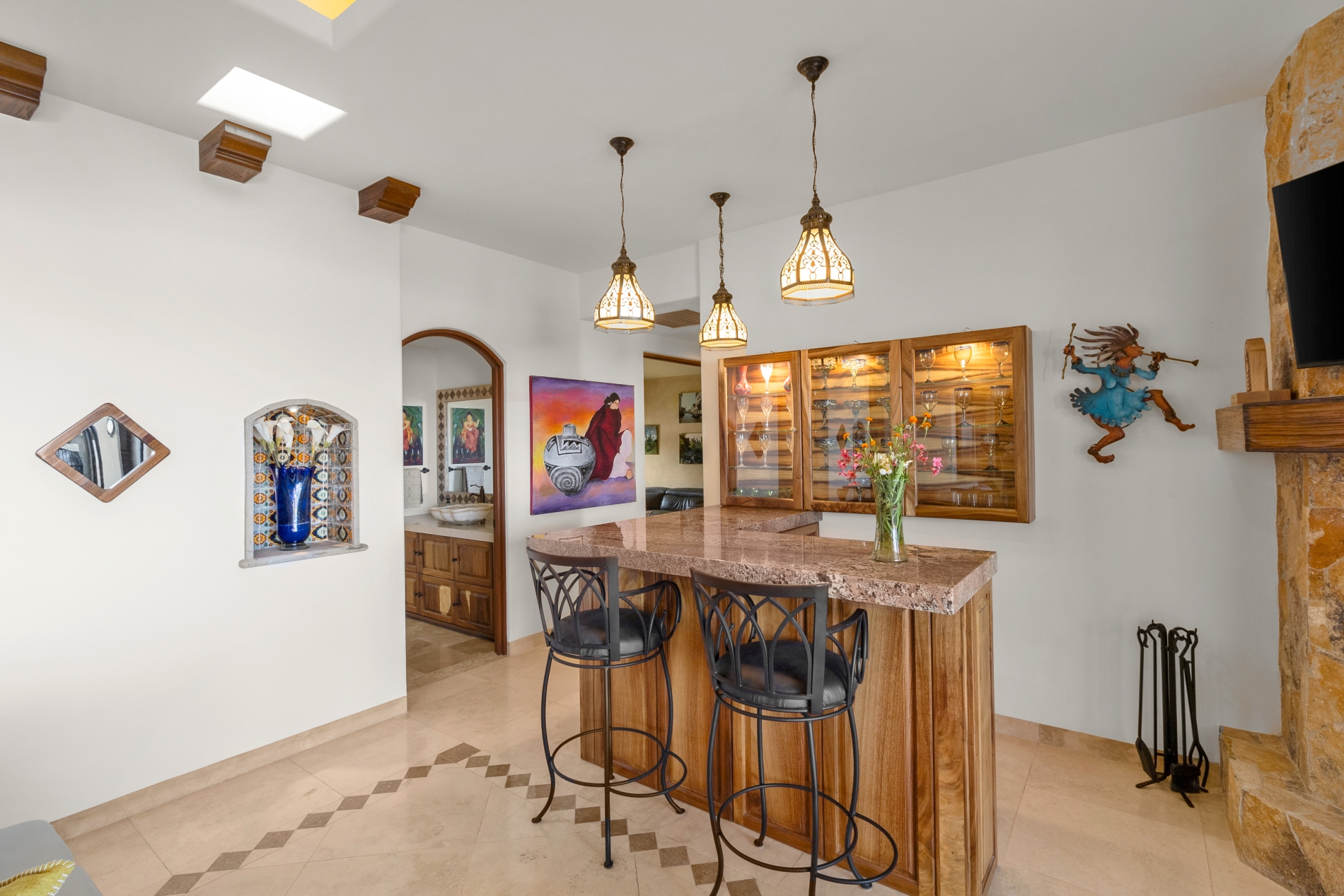 Nestled atop the Altillo Community, this remarkable single-level, seven-bedroom home boasts unbeatable 180-degree views, including Palmilla Point, the lighthouse, the marina, the golf course, mountains, and city lights. The expansive open floor plan includes five spacious bedrooms, each with an en-suite bathroom, perfect for relaxation. Additional features include a TV room, gym, and a charming casita complete with its own private kitchen, living room, and bedroom. The home is designed with two walk-in master closets, eight skylights, an outdoor shower, and a Sonos music system both inside and outside. The hurricane-resistant windows flood the home with natural light, offering breathtaking ocean vistas from every room. The outdoor pool and BBQ area seamlessly blend indoor and outdoor living, creating an ideal space for entertaining. The two-level rooftop sitting area provides a perfect spot to enjoy sunrises, sunsets, and moonrises. At the end of the day, you can relax on the roof deck, enjoying a glass of wine while taking in the unobstructed 360-degree views - a rare feature in PLC. This home truly offers a unique and luxurious living experience.