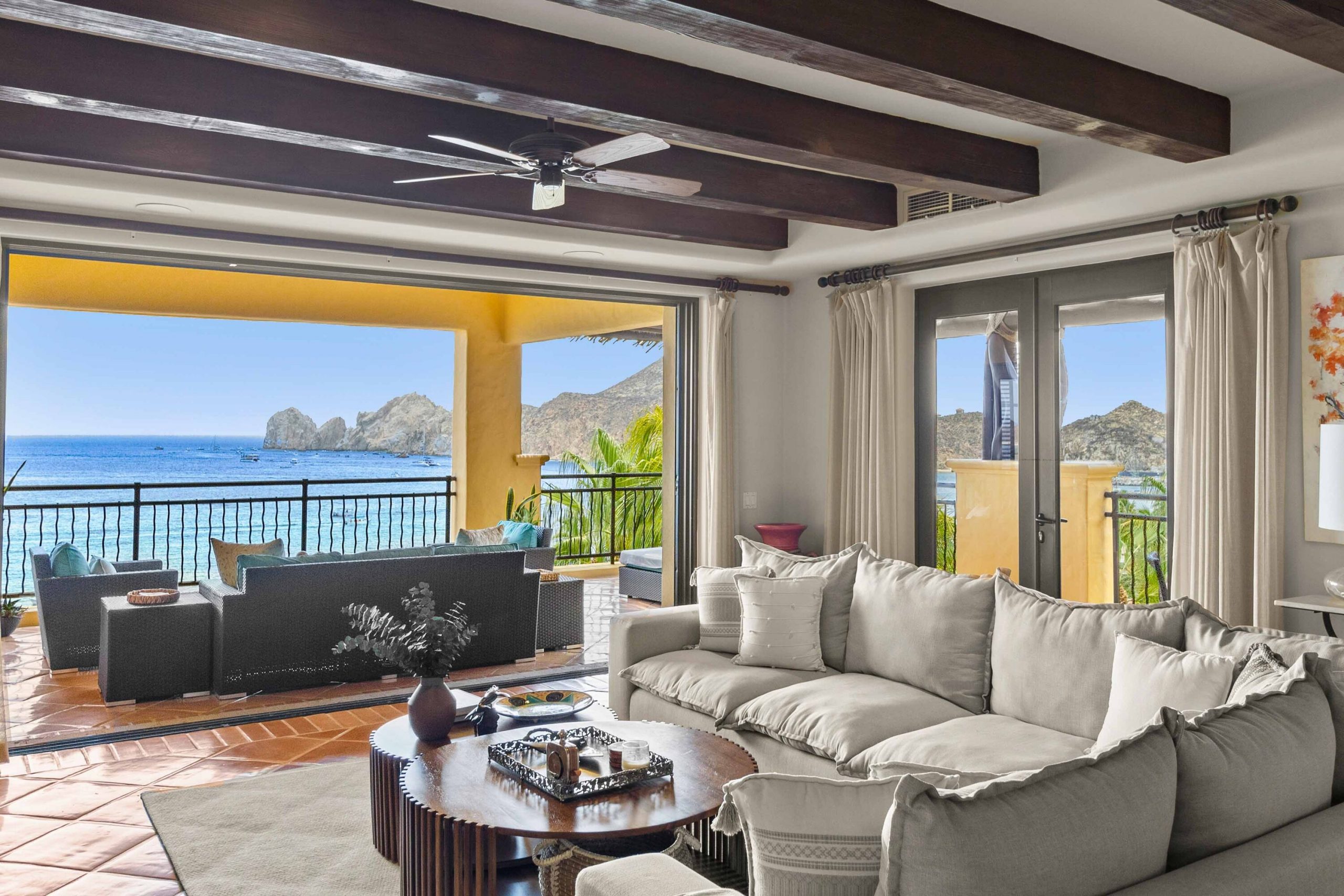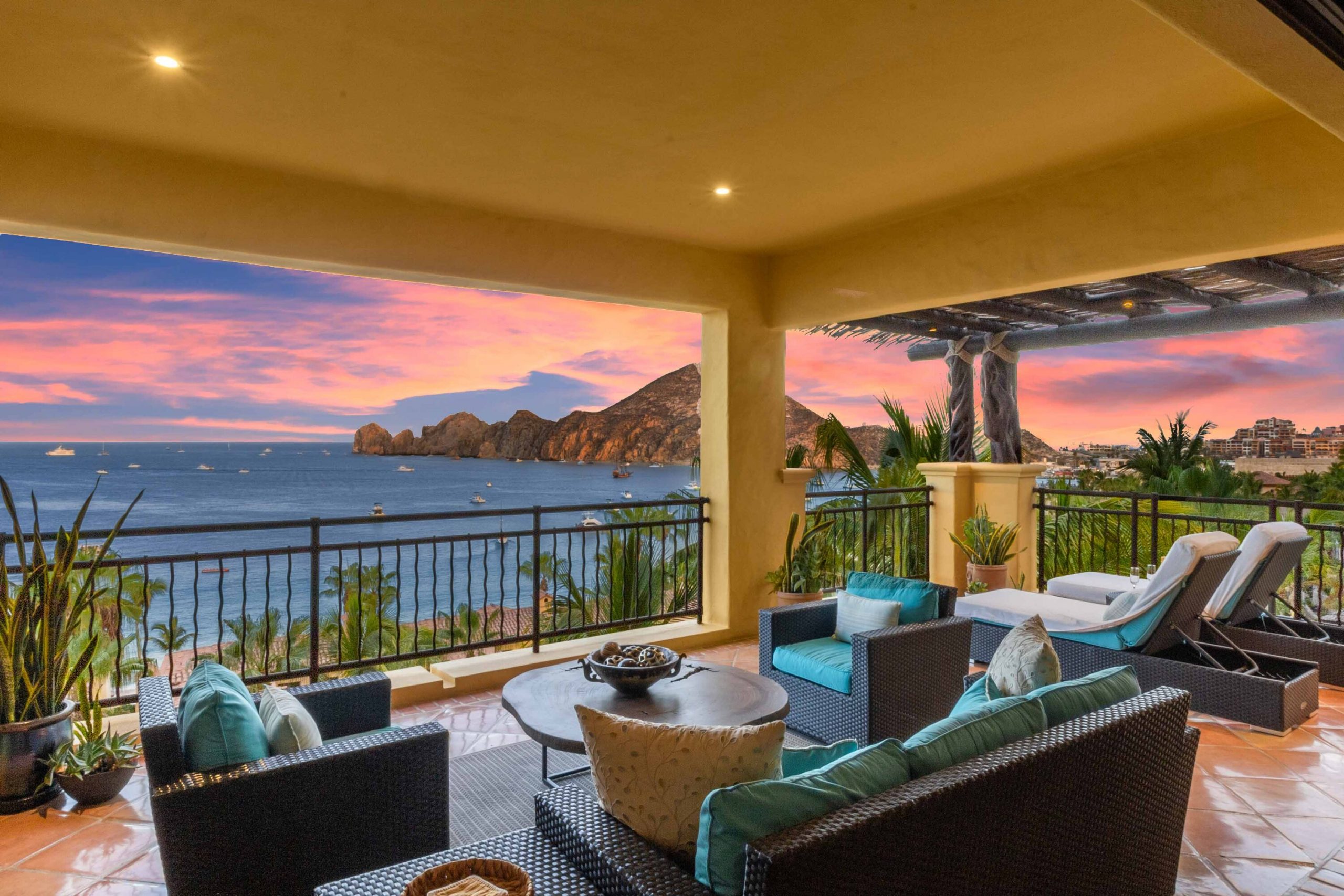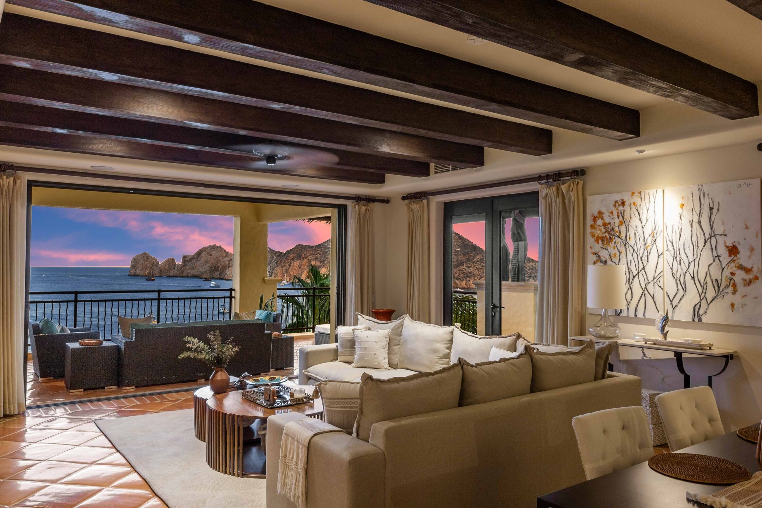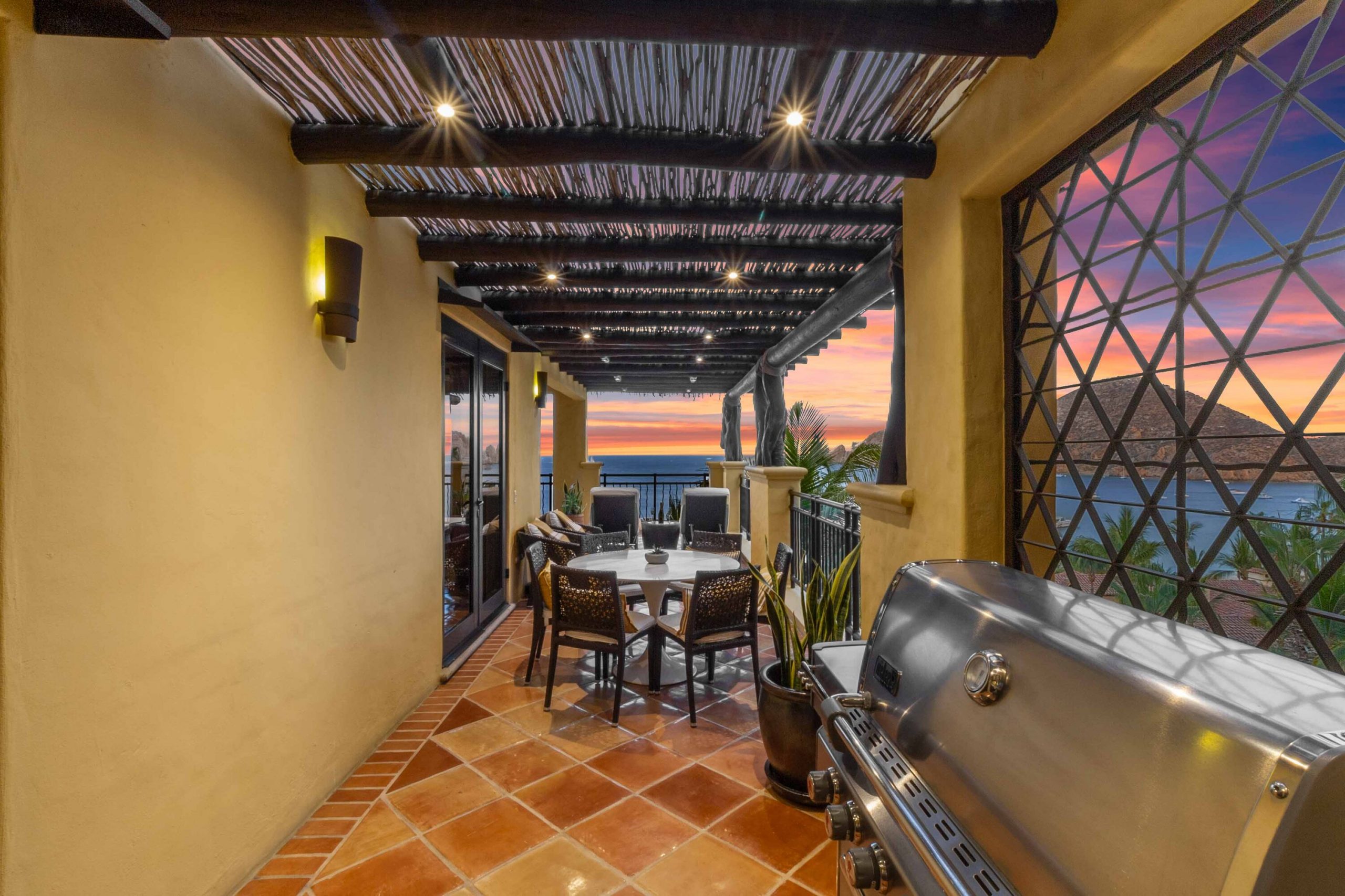 The residence offers a spacious open floor plan that flows effortlessly to a wraparound terrace, creating true indoor-outdoor living. Multiple lounge areas allow you to take in the day from every angle—sunrises over the Sea of Cortez, the golden glow of sunsets, boats drifting in the harbor, and the twinkling city lights at night A BBQ makes dining al fresco both easy and enjoyable, while a recently remodeled pergola with integrated lighting sets the perfect ambiance for evenings under the Cabo sky. During the winter season, it becomes an unrivaled vantage point for whale watching, an experience that turns everyday moments into lasting memories. For seamless entertaining, Sonos sound systems extend from the living room to the terrace, surrounding your gatherings with music and atmosphere.