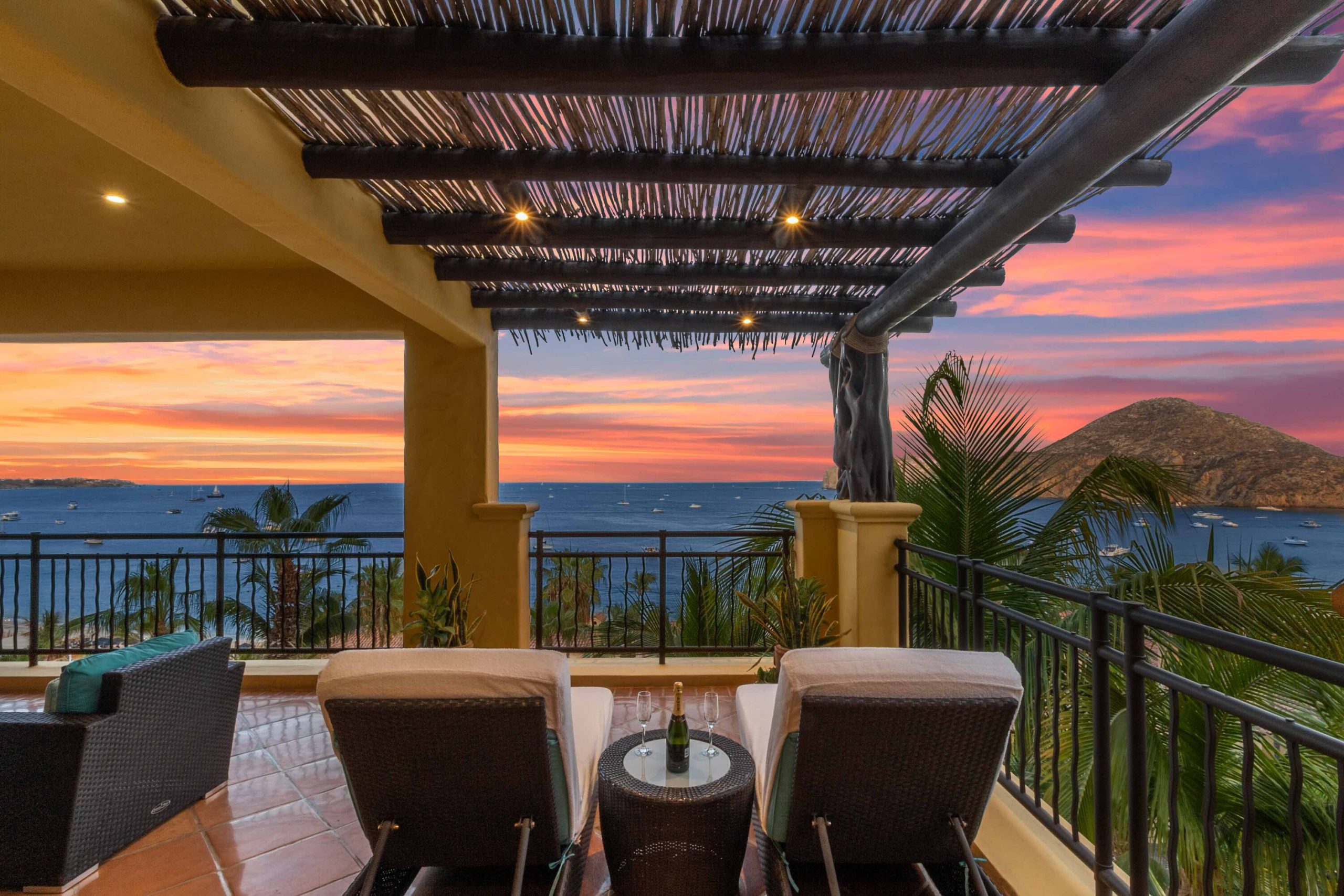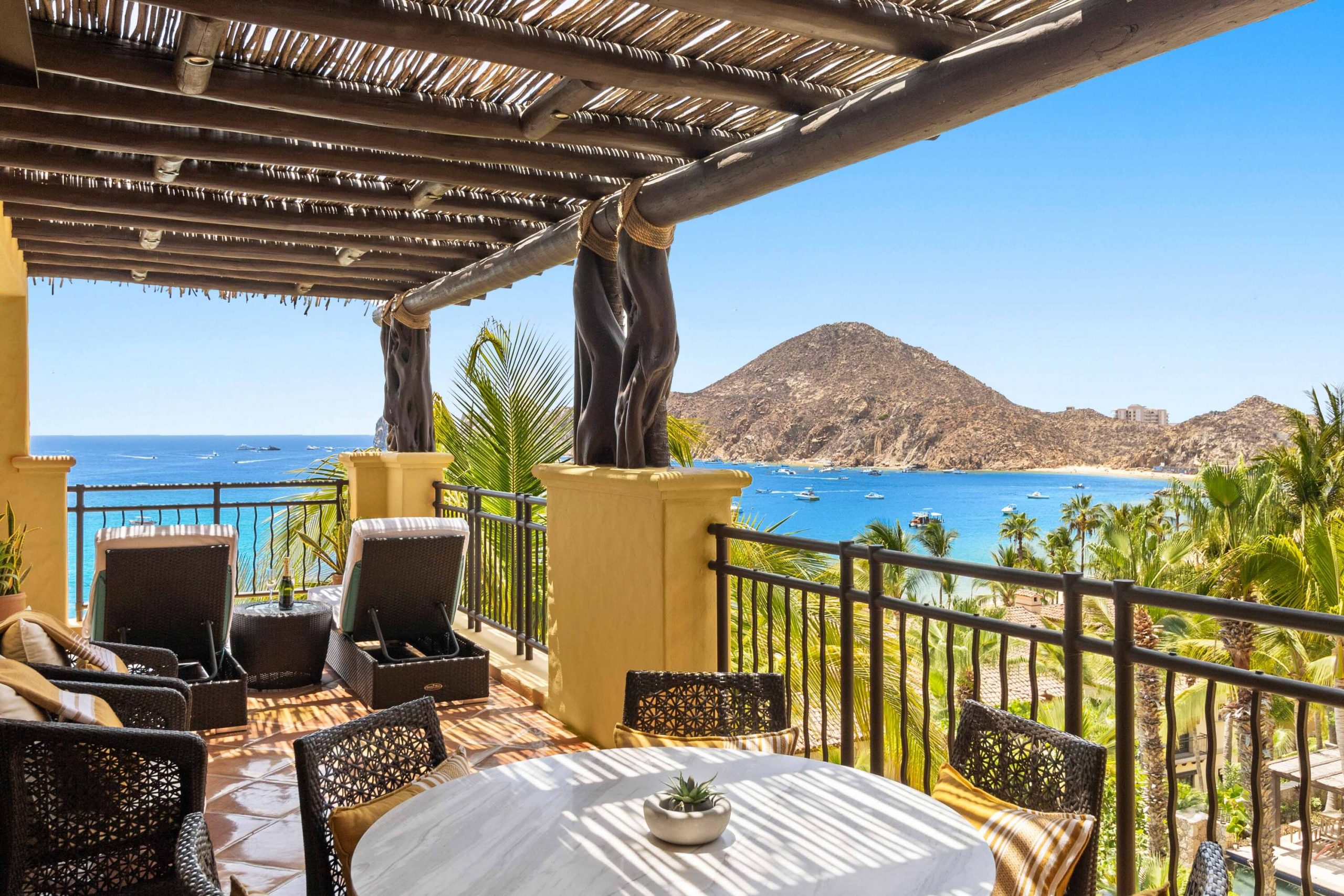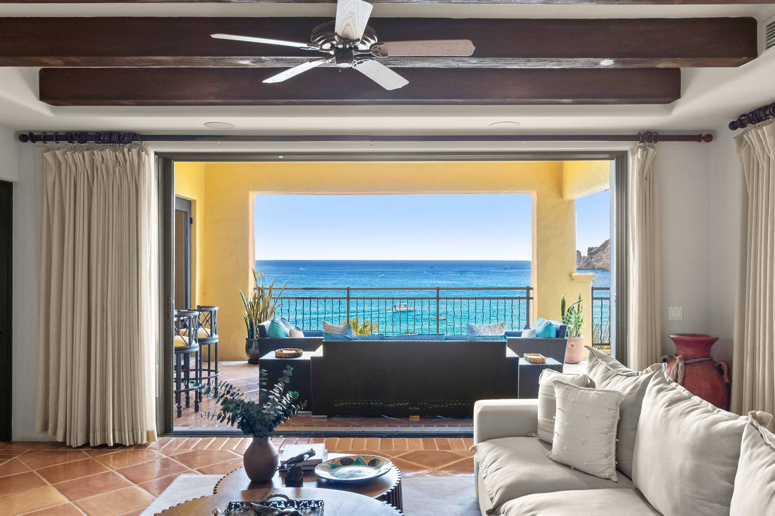 The residence offers a spacious open floor plan that flows effortlessly to a wraparound terrace, creating true indoor-outdoor living. Multiple lounge areas allow you to take in the day from every angle—sunrises over the Sea of Cortez, the golden glow of sunsets, boats drifting in the harbor, and the twinkling city lights at night A BBQ makes dining al fresco both easy and enjoyable, while a recently remodeled pergola with integrated lighting sets the perfect ambiance for evenings under the Cabo sky. During the winter season, it becomes an unrivaled vantage point for whale watching, an experience that turns everyday moments into lasting memories. For seamless entertaining, Sonos sound systems extend from the living room to the terrace, surrounding your gatherings with music and atmosphere.