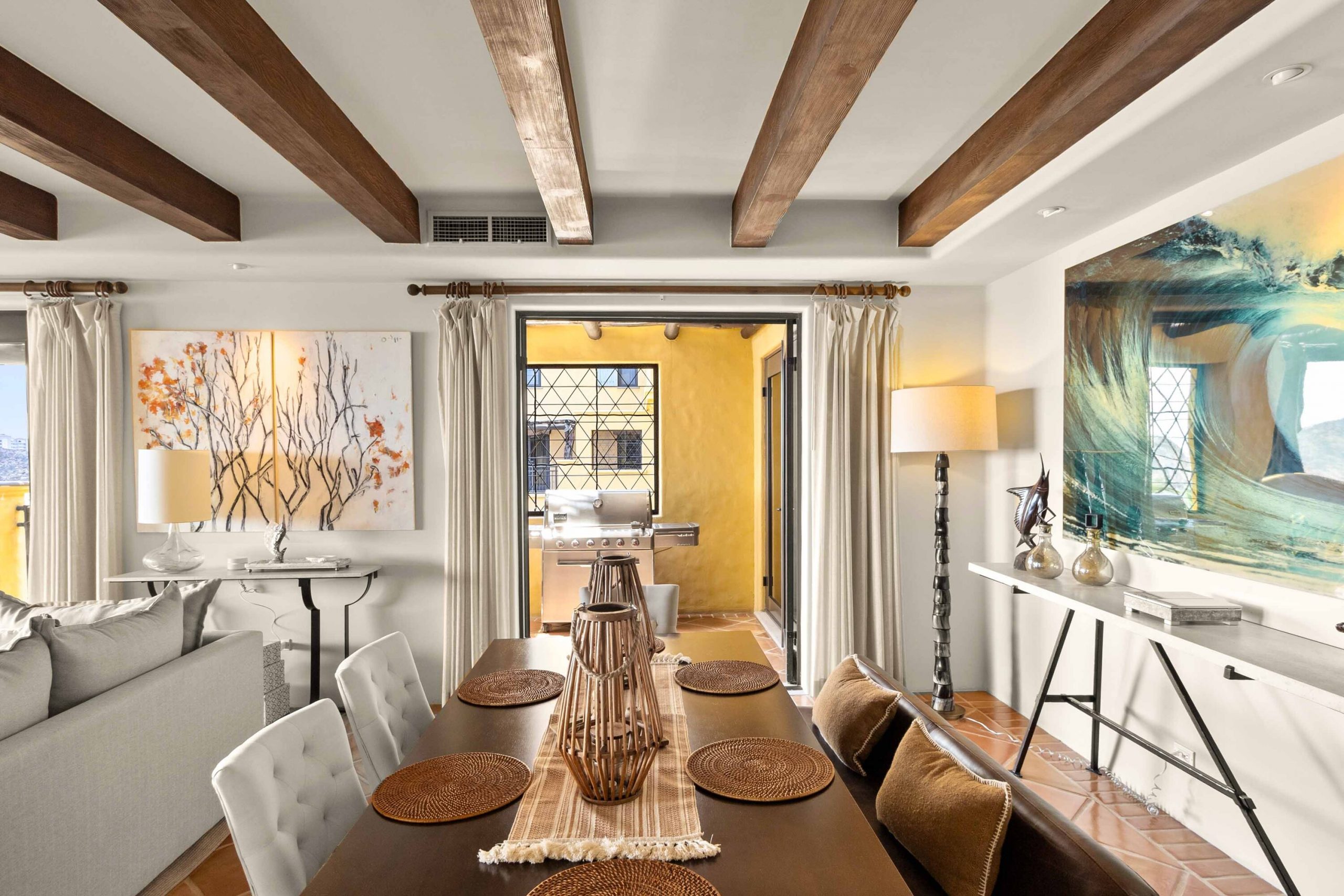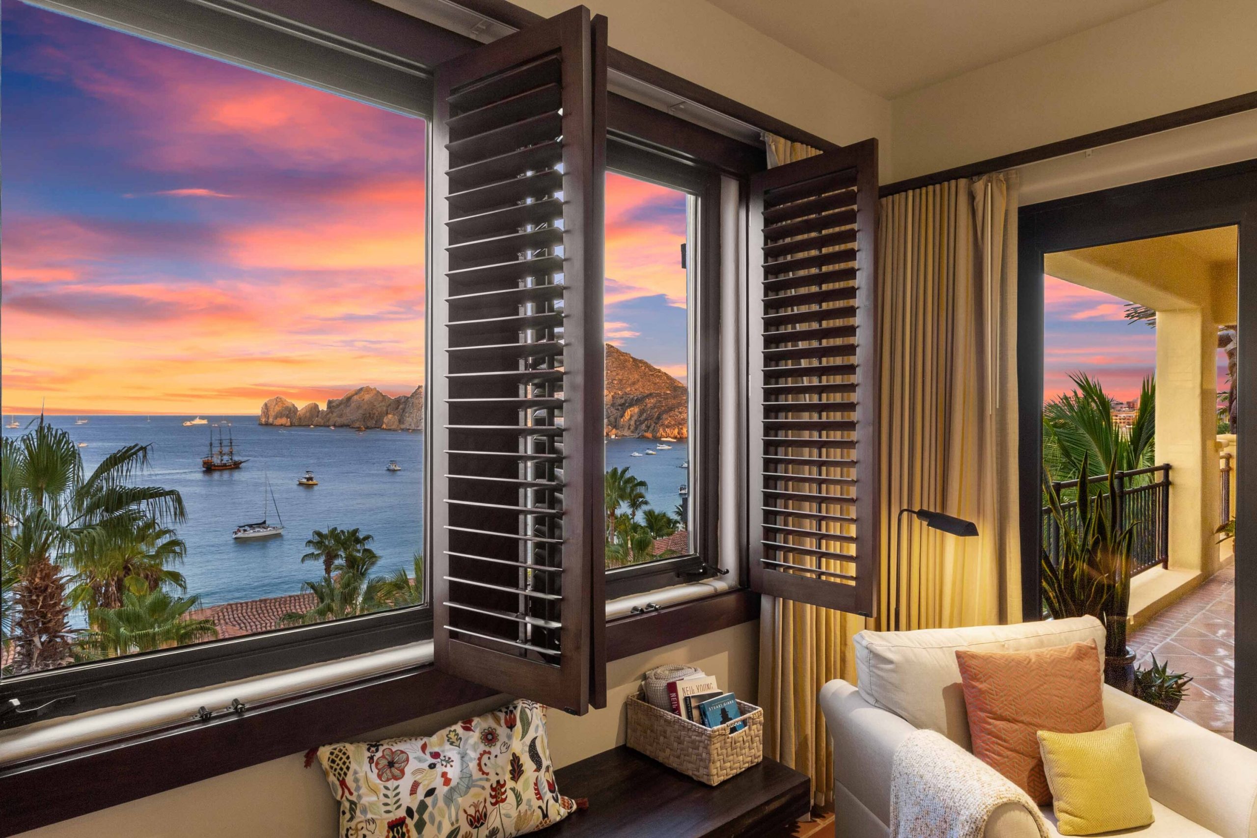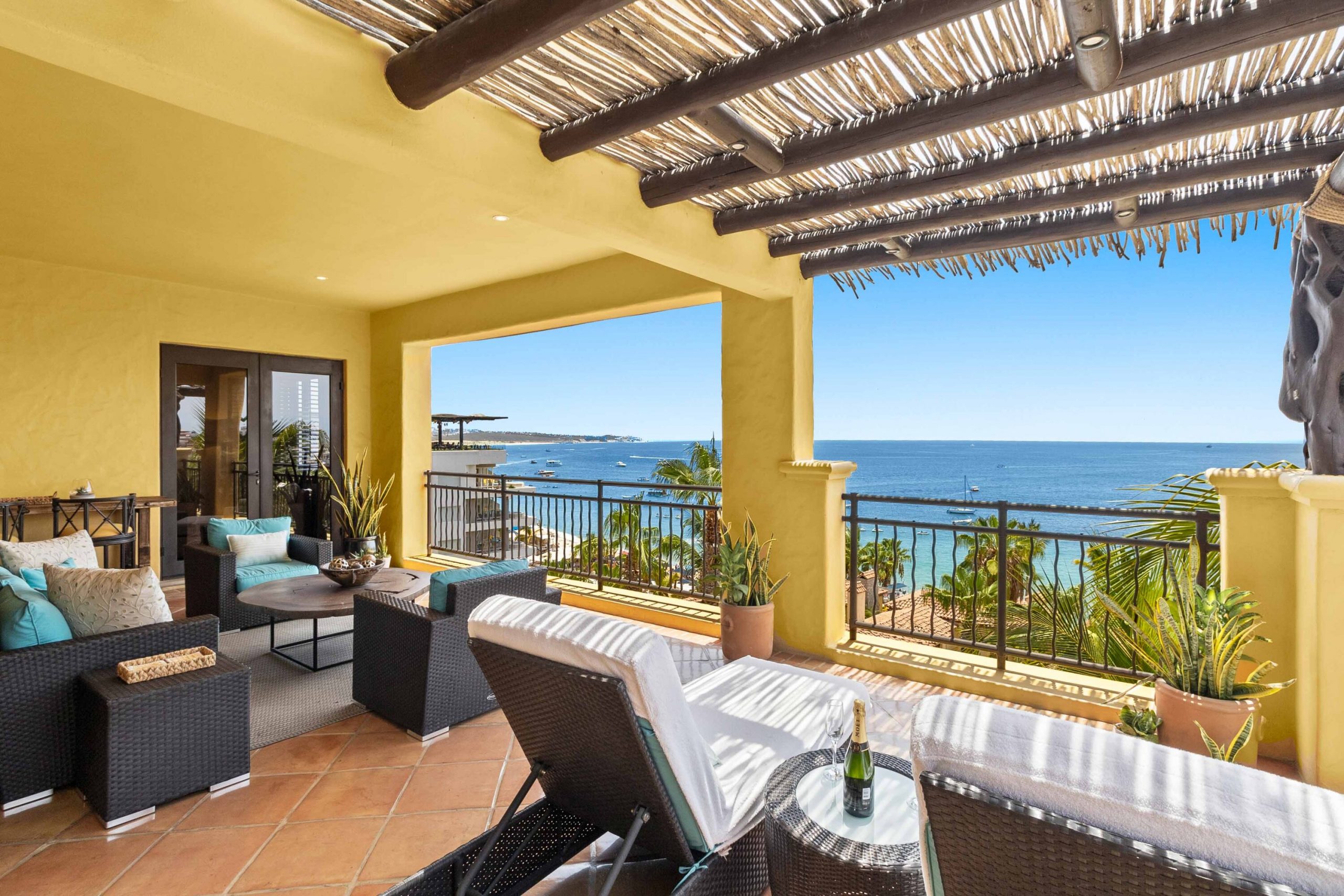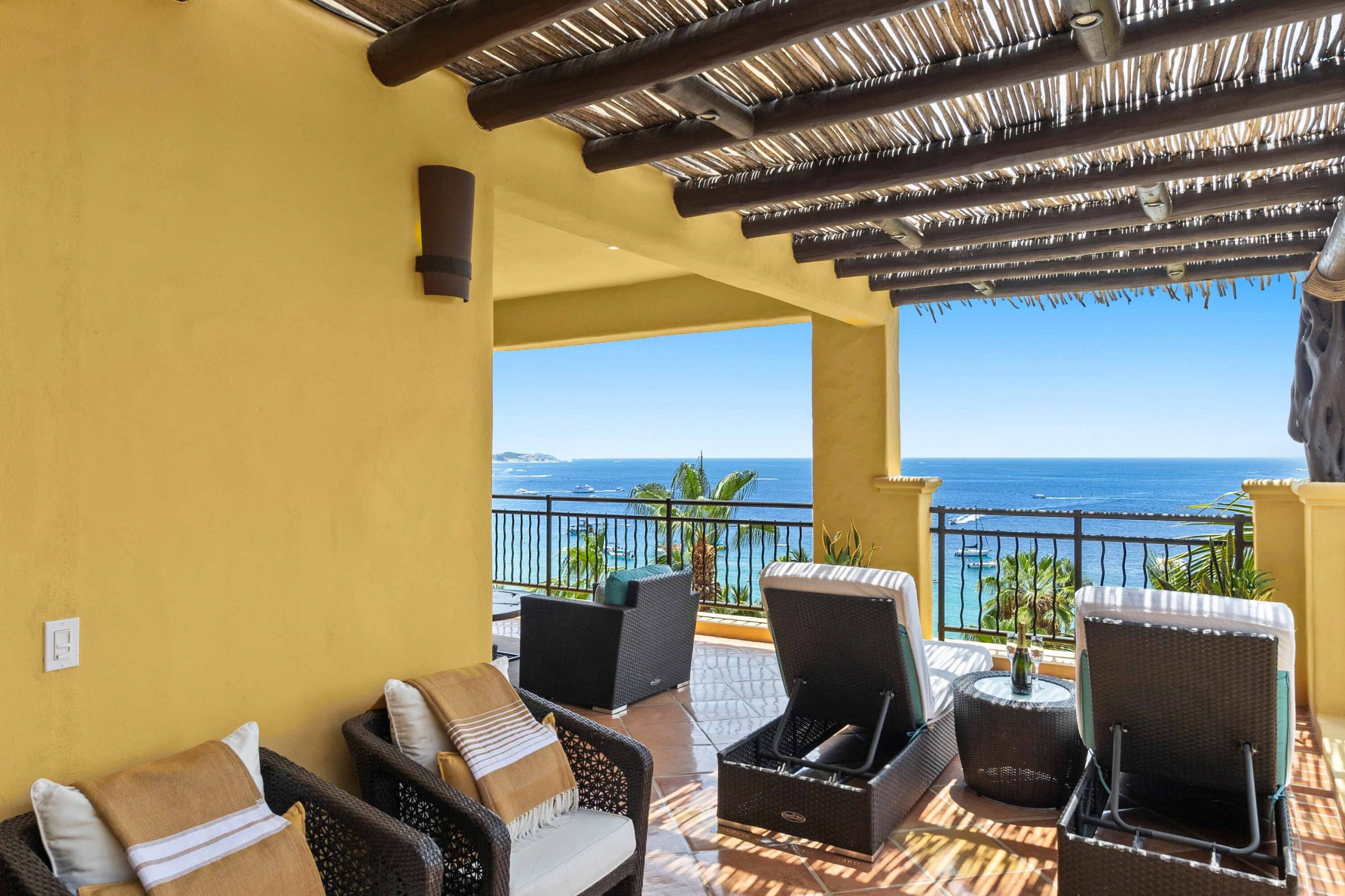 The residence offers a spacious open floor plan that flows effortlessly to a wraparound terrace, creating true indoor-outdoor living. Multiple lounge areas allow you to take in the day from every angle—sunrises over the Sea of Cortez, the golden glow of sunsets, boats drifting in the harbor, and the twinkling city lights at night A BBQ makes dining al fresco both easy and enjoyable, while a recently remodeled pergola with integrated lighting sets the perfect ambiance for evenings under the Cabo sky. During the winter season, it becomes an unrivaled vantage point for whale watching, an experience that turns everyday moments into lasting memories. For seamless entertaining, Sonos sound systems extend from the living room to the terrace, surrounding your gatherings with music and atmosphere.