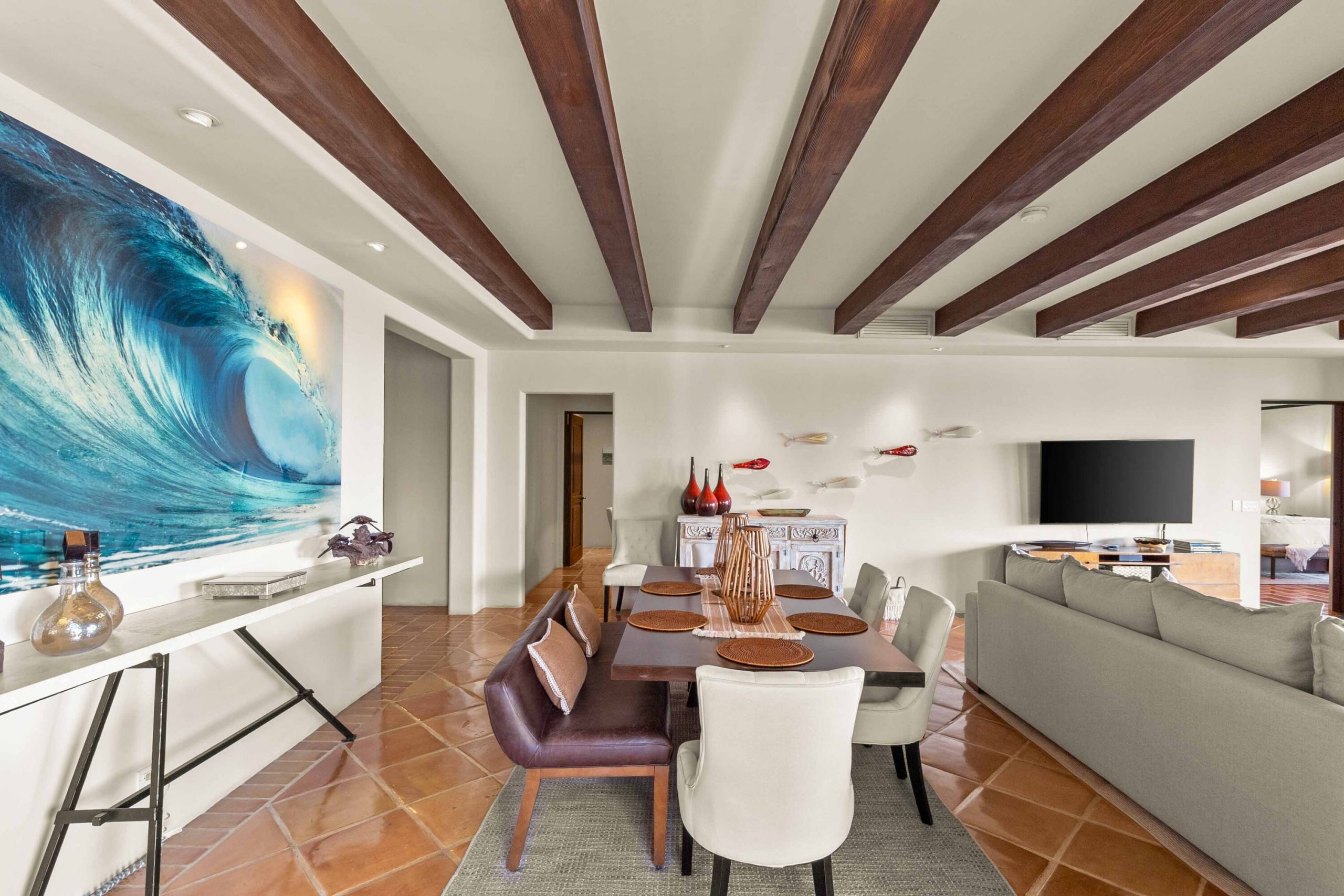 Additional features include a powder room and a dedicated niche with a deskperfect for occasional computer use while still embracing the Cabo lifestyle.